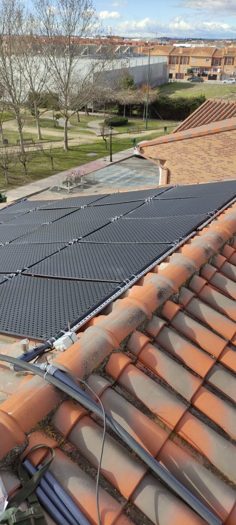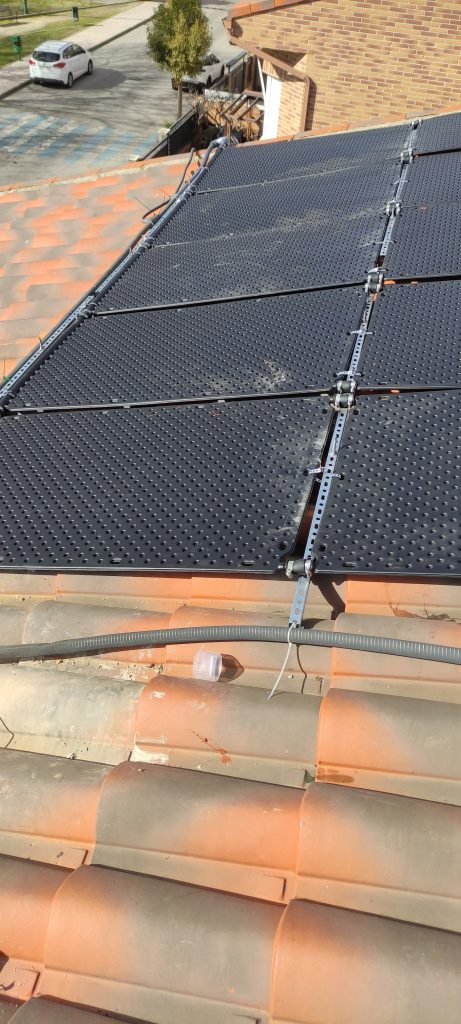 Instalación placas solares para calemtar la piscina que esta en sombra